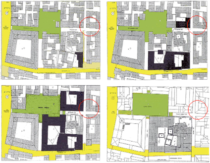 Nelle riproduzioni tratte dal libro “Presenze scaligere Veronesi 1 “ di cui sopra la riproduzione dell’ “ipotesi intorno al 1333 “ si nota in fianco ad una torre, probabilmente corrispondente al primo impianto dell’attuale Palazzo Moise Bressan ora Vinco da Sesso, il nostro immobile con una rappresentazione architettonica arbitraria ma comunque probabile come le tavole successive, sotto riprodotte, in cui nell’angolo dell’isolato prima viene inserita una torre e poi altri edifici con tipologie di copertura differenti. Sicuramente tutte queste teorie sono avvalorate da ipotesi storiche e probabilmente descrittive ma prive finora di supporti cosiddetti “ sul campo “ per epoche così remote. Nell’esecuzione dei lavori di restauro della facciata contigua su Vicolo Cavalletto, dall’analisi di porzioni di muratura e forometrie portate alla luce in fase di lavorazione e documentate fotograficamente, si sono potute riscontrare varie informazioni sui corpi di fabbrica vicini e cronologie costruttive tutte sicuramente successive il periodo scaligero.
