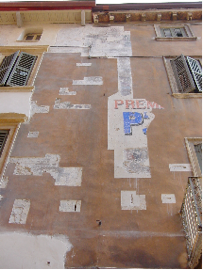 Gentile Arch. Forlati, come da Vs incarico le trasmettiamo copia della relazione sulle risultanze derivate dalle campionature eseguite sugli intonaci presenti in facciata dell’immobile in oggetto. Come già concordato in cantiere, in corso d’opera si è ritenuto di prolungare i sondaggi già eseguiti anche nel primo metro della facciata contigua - sempre di proprietà Guiotto sia per una nostra miglior lettura dei dati da decifrare, sia per offrire più elementi di progetto circa il delicato punto di confine fra i due edifici, anticamente molto più legati anche esternamente; é certamente questa la zona che offre le più preziose testimonianze artistiche riscontrate, riferibili ai secoli XV e XVI, costituiti da notevolissimi affreschi di assai ampia estensione. Si raccomanda perciò di avere la massima cautela per tutta la porzione muraria a destra dell’ultimo registro di finestrature, verso via S. Maria in Chiavica.